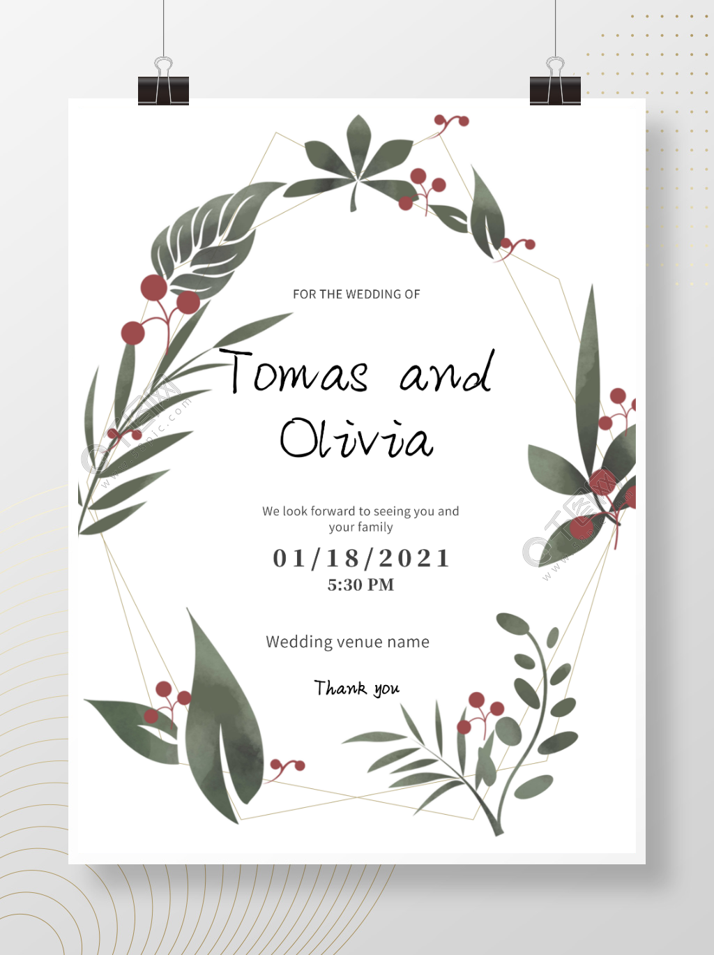 CeoMax-Pro主题 素材下载 小清新植物边框婚礼邀请函简约海报背景 https://wuyins.com/sucai/277.html