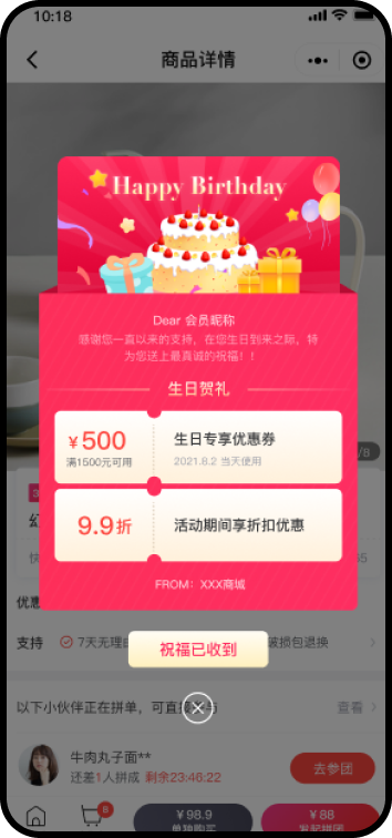 商户可自定义生日贺卡的样式和内容,强调生日仪式感,增强会员黏性。