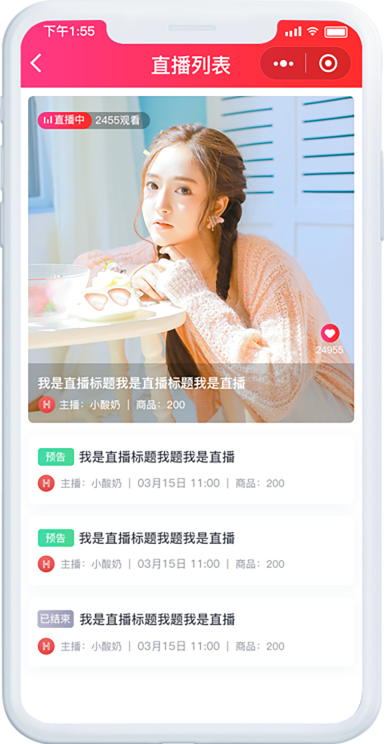直播带货界面由经验丰富的专业设计师团队倾心打造,页面美观大方,构建精致舒适的直播间,高效驱动用户体验。